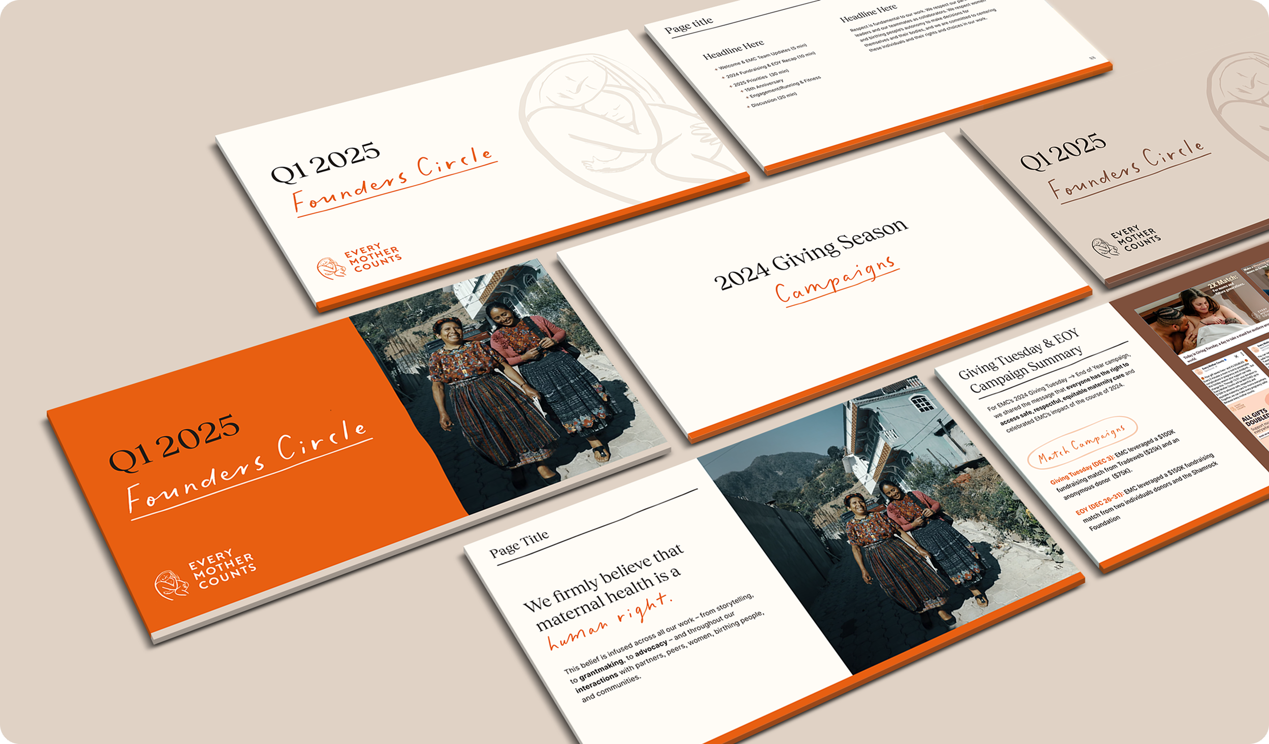 Every Mother Counts is working to make the maternal health journey safe, respectful, and equitable for all. As the sole designer on the project with the team at Great Believer, I led the visual and UX design for their website redesign and created several branded materials. Throughout the process I refreshed the brand system to feel warm, welcoming, and fresh, while making the website more accessible to users who are new to the maternal health space. The result is a beautiful new site and visual identity, which strikes a balance between emotional resonance and clear, informative content.